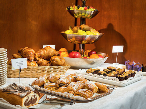 Freunde der Vollwertkost freuen sich über die Auswahl an Müslis und Vollkornprodukten, süße Frühstücker greifen bei Croissants und Briochegebäck mit Honig von der Imkerei Herold aus Gratwein zu. Für den herzhaften Appetit bereiten wir für Sie in unserer Küche gerne zahlreiche Eiergerichte zu. Frisch aufgeschnittenes Obst und Gemüse sowie herrliche Säfte versorgen Sie morgens mit Vitaminen, sodass Sie optimal in den kommenden Tag starten.